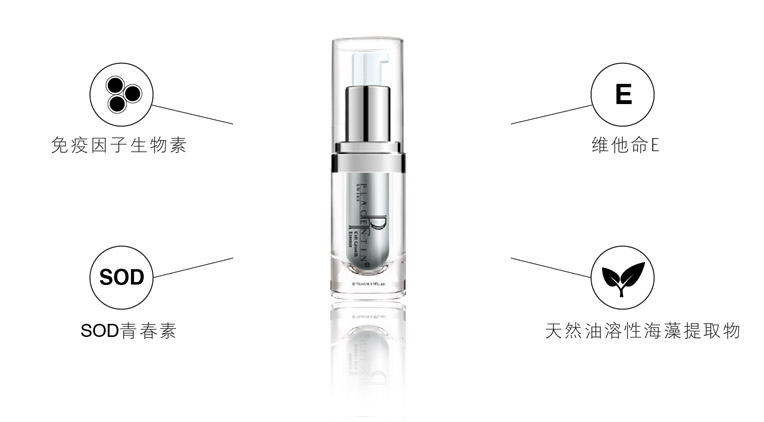 天然油溶性海藻提取物,維他命E,免疫因子生物素,SOD青春素。