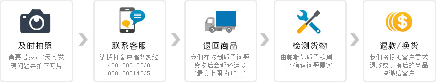 5、如有其他疑問,請致電帕斯婷中國客戶服務中心 400-883-3338,800-999-8185或發郵件到 service@ptp.cn 聯系帕斯婷網站的客戶服務部門。